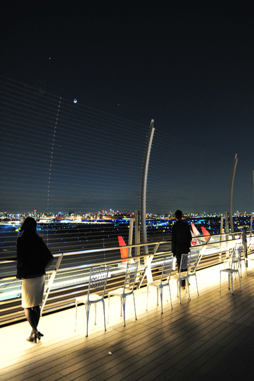 見渡す東京湾は、オレンジの煌き、鮮やかなブルー。