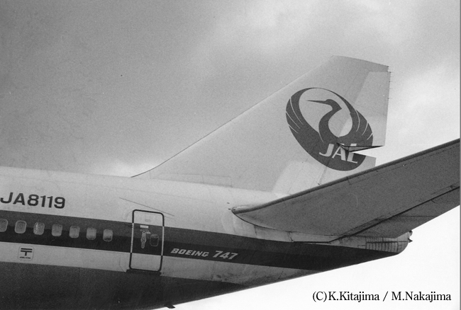 掲載のジャンボ747(白黒写真)は、在りし日の123便(JA8119)、そのものです。