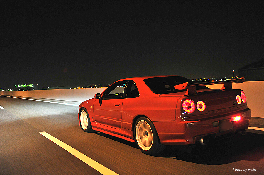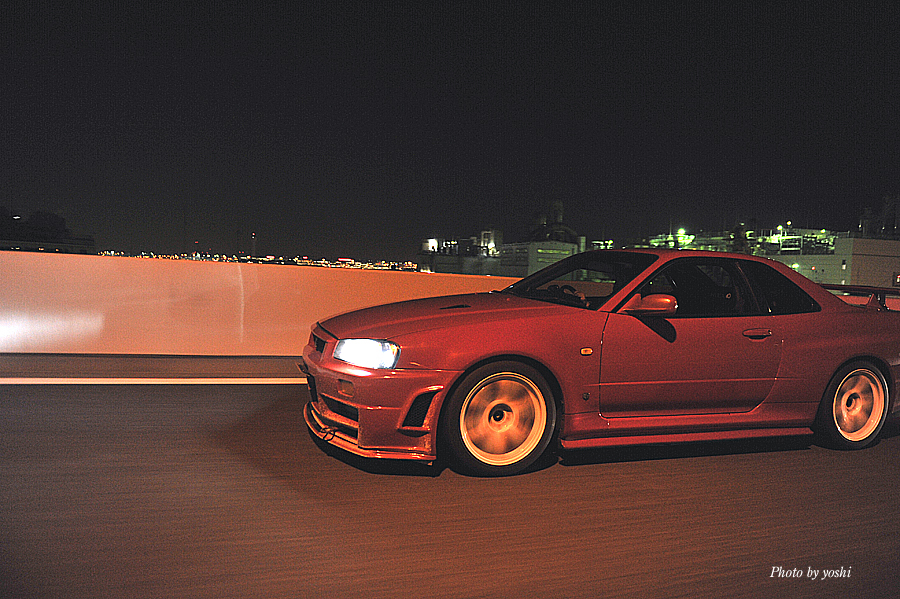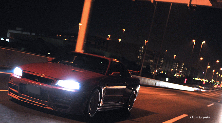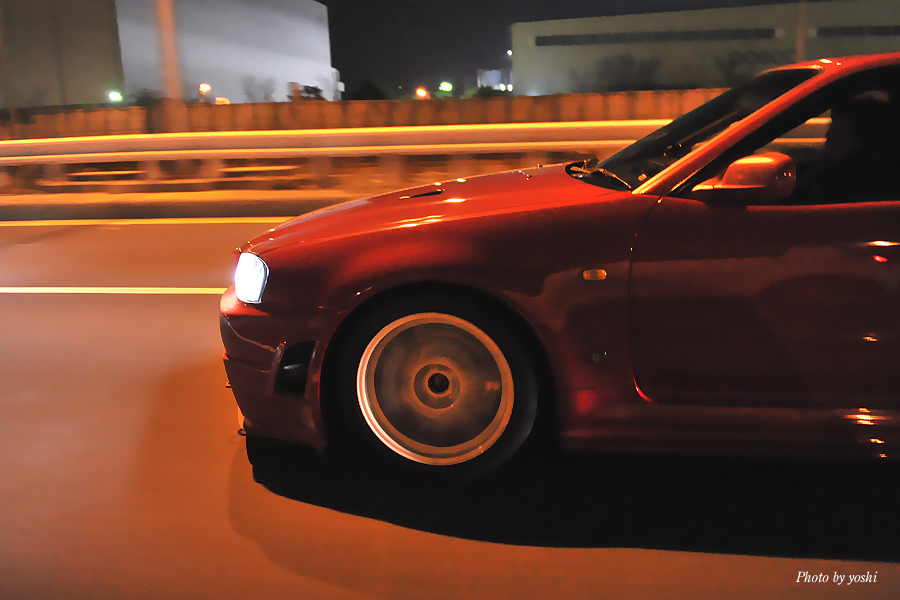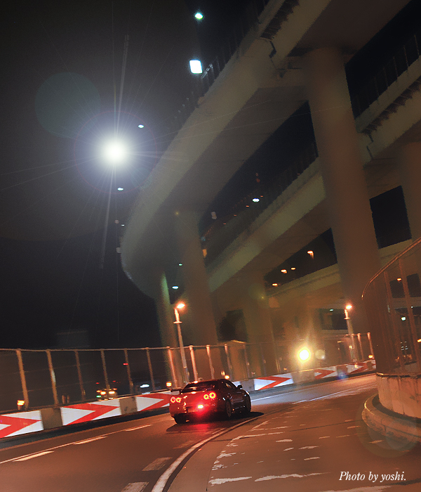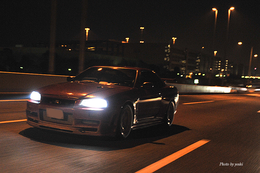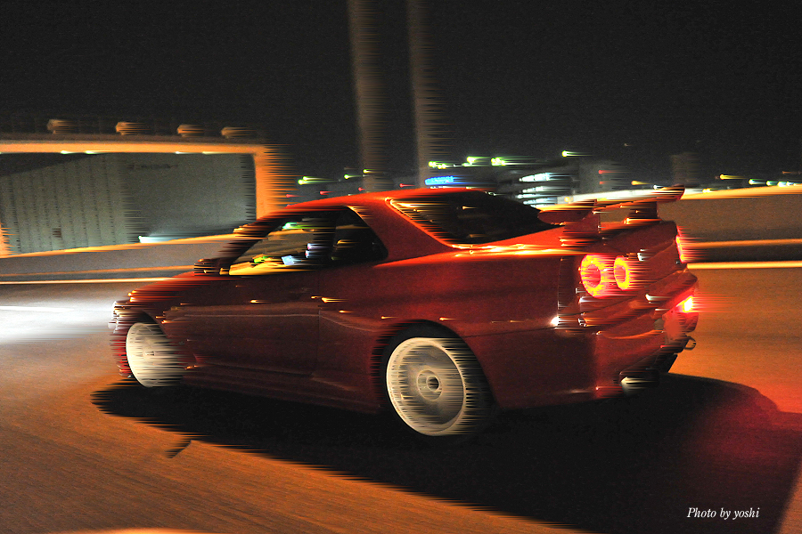 闇夜の中を流れ飛ぶ、光の連なり。